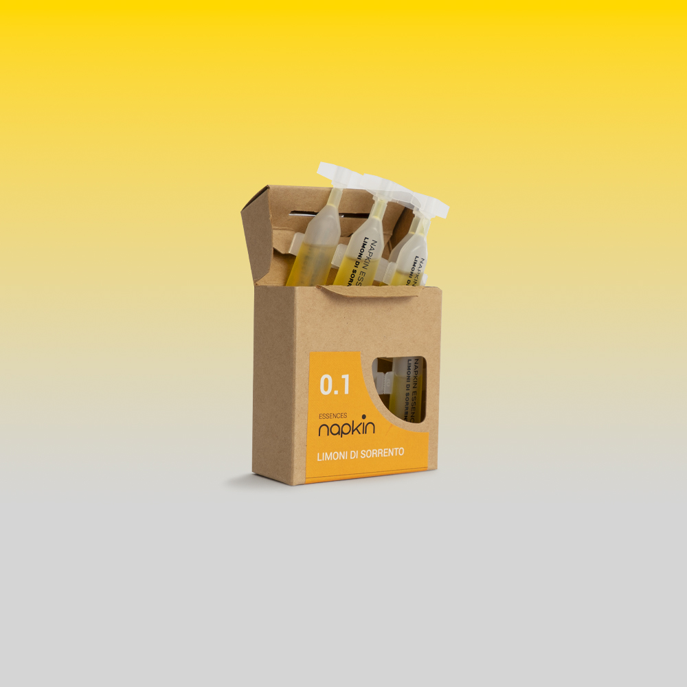 L'Essenza 01 ai Limoni di Sorrento di Napkin è una fragranza concentrata solubile in acqua, formulata per offrire un'esperienza olfattiva naturale, fresca e rigenerante. Ideale per l'attivazione delle salviette compresse in viscosa o per l'utilizzo come profumatore in ambienti wellness, hotellerie, spa e ristorazione.